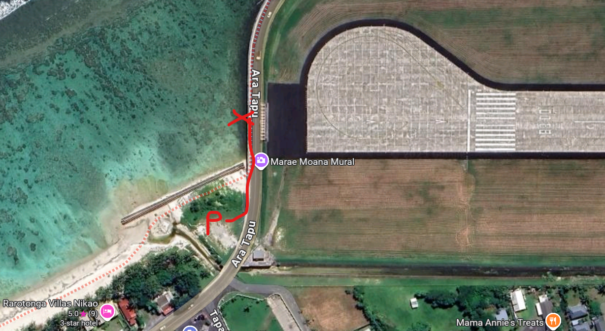 - Park in the area past the runway where the seawall art starts (see photos below)